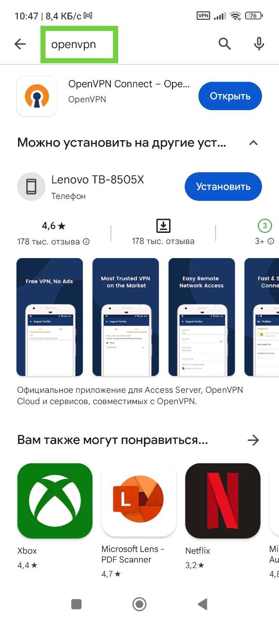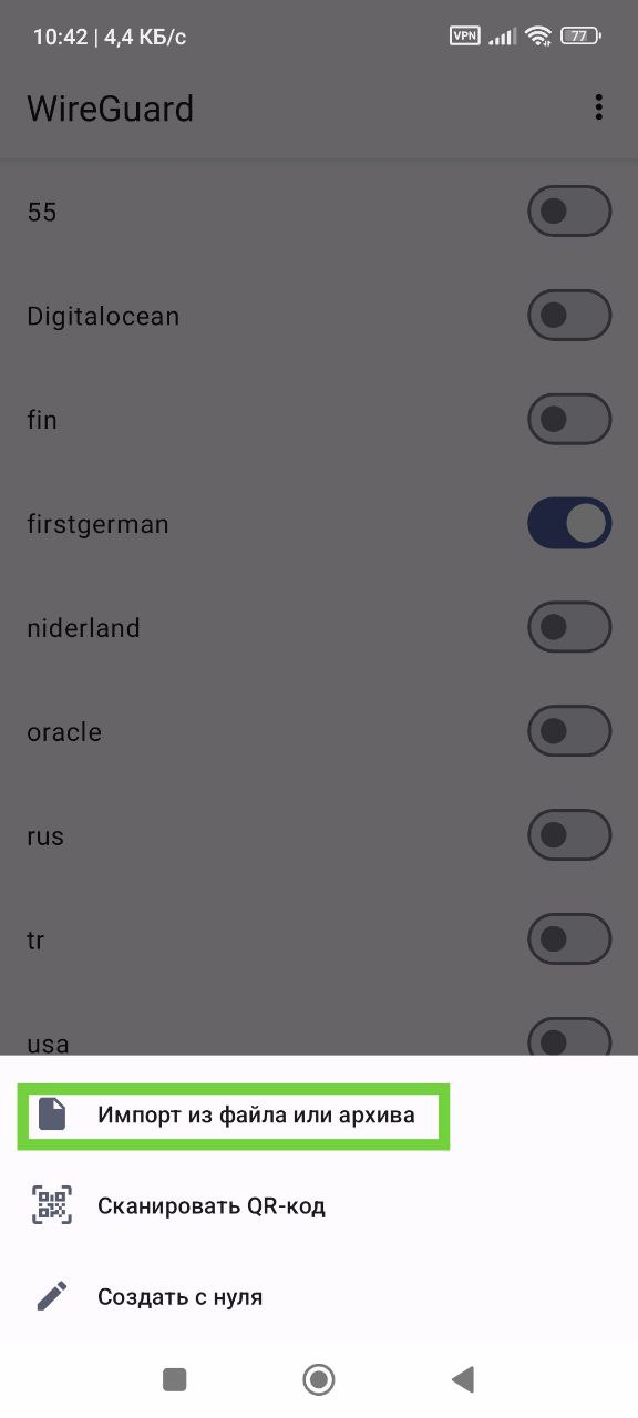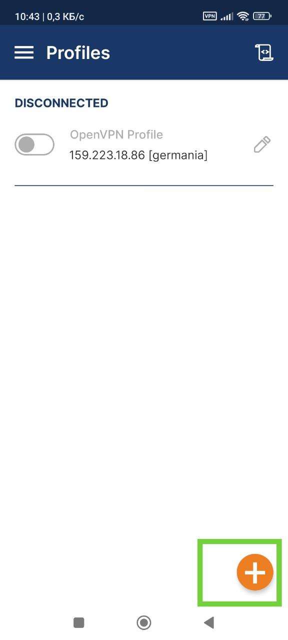 После установки, нажимаем на "+" для добавления файл-конфига в формате *.ovpn