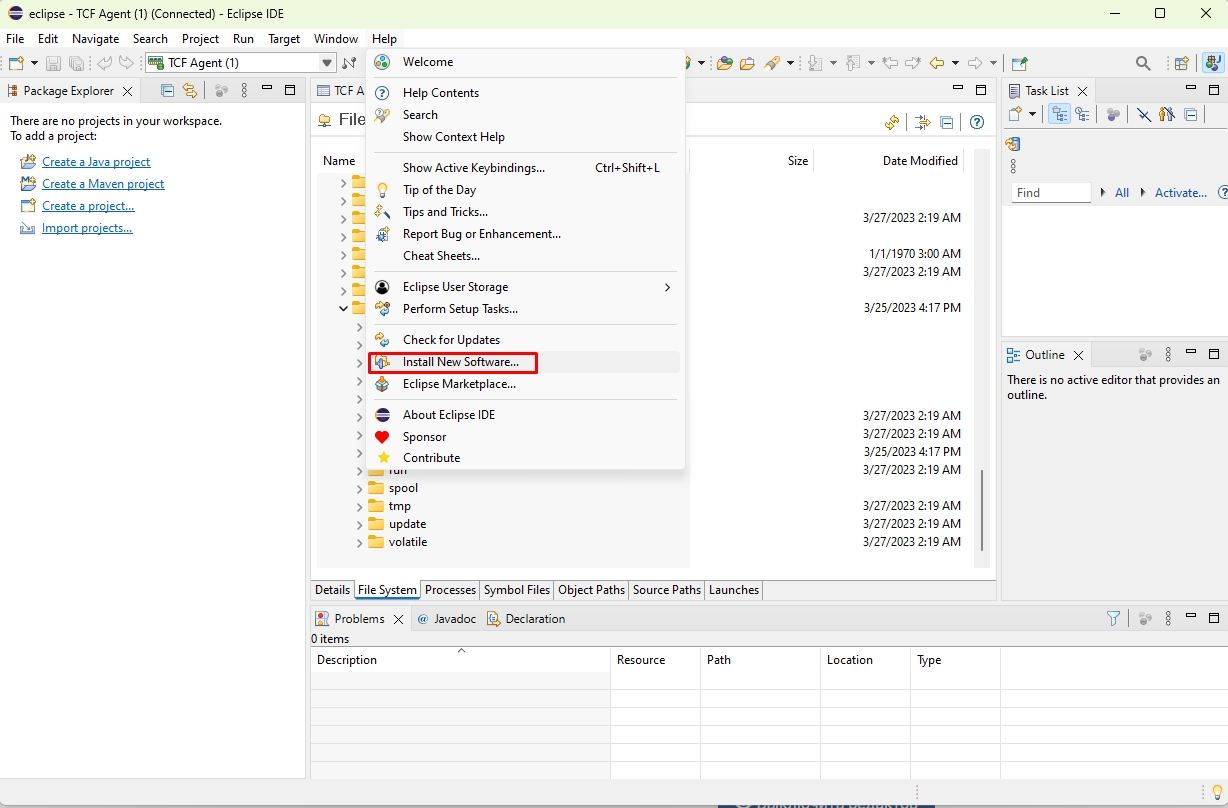 8. Выберите "Target Communication Framework" и "TCF Target Explorer".