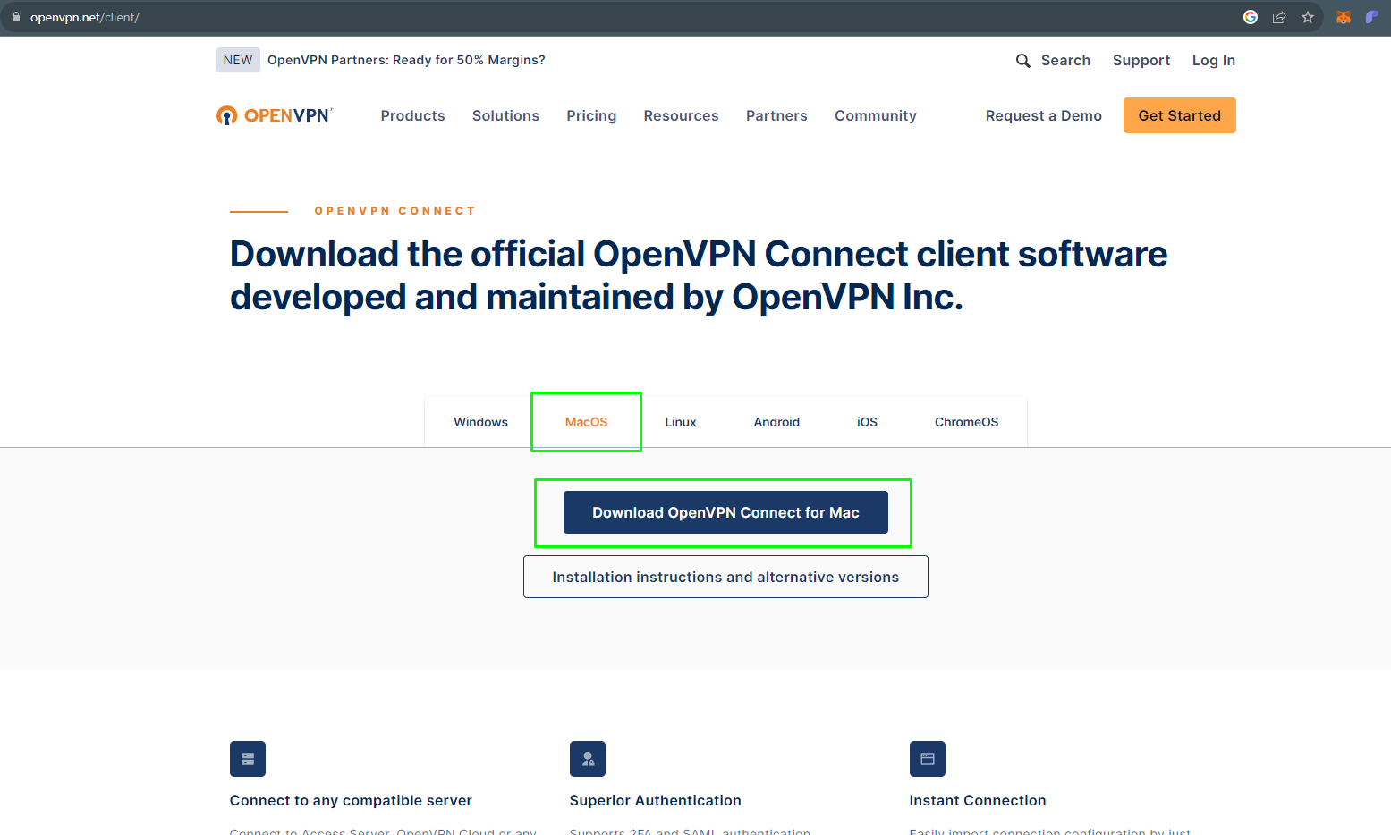 Устанавливаем, запускаем и указываем путь к файл-конфигу формата *.ovpn