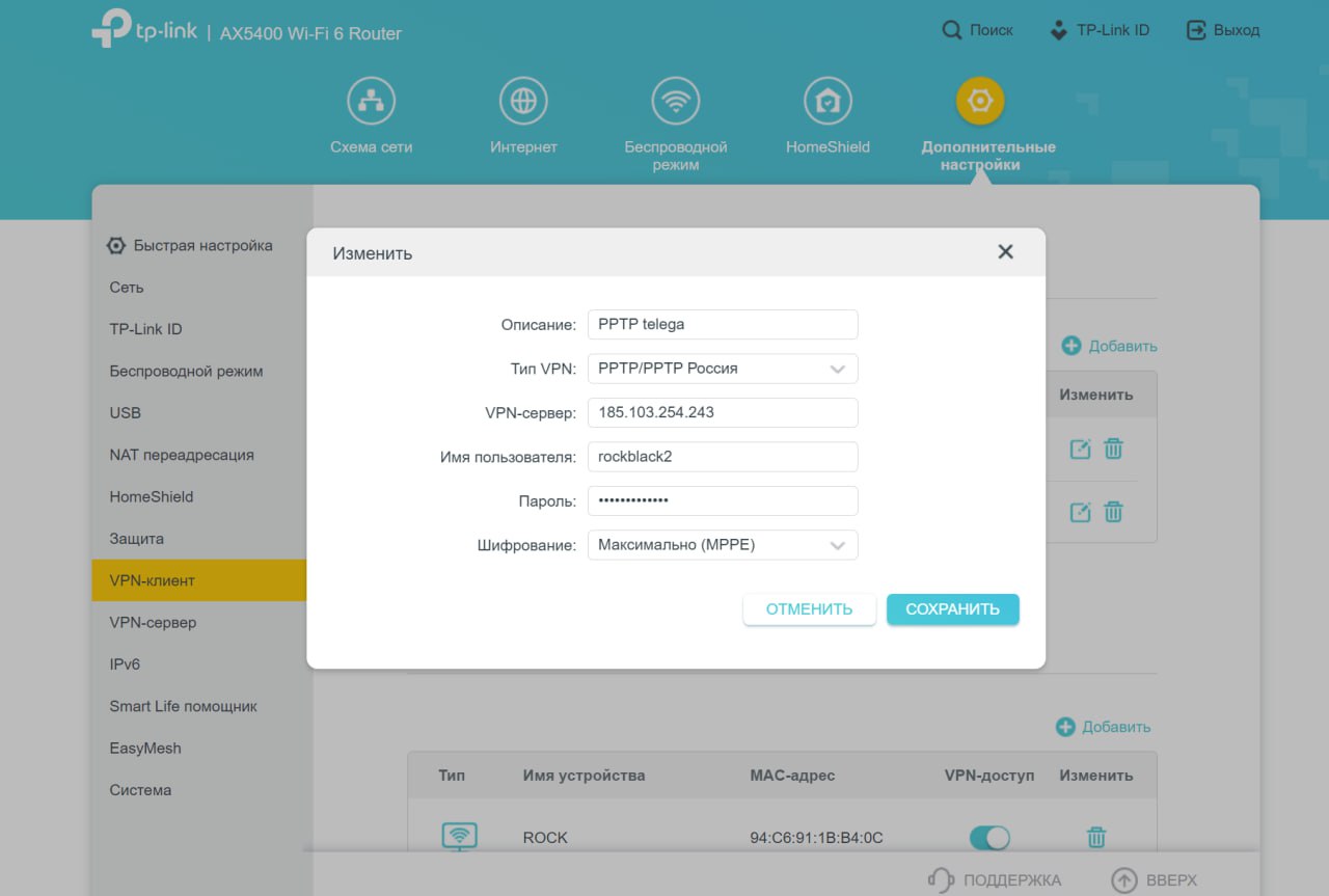 Выбираем нужные устройства, которые будут работать под VPN и перемещаем в созданный профиль VPN и нажимаем кнопку "Подтвердить"