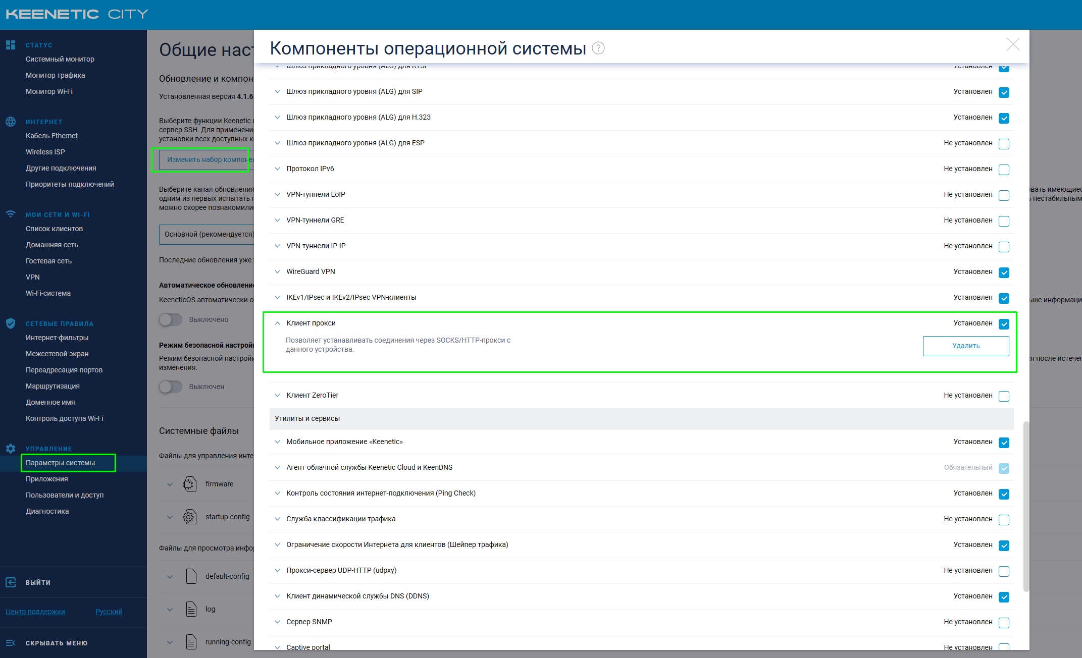 Для этого зайти в меню - параметры системы, нажать кнопку "Изменить набор компонентов" и поставить птичку на Клиент прокси
